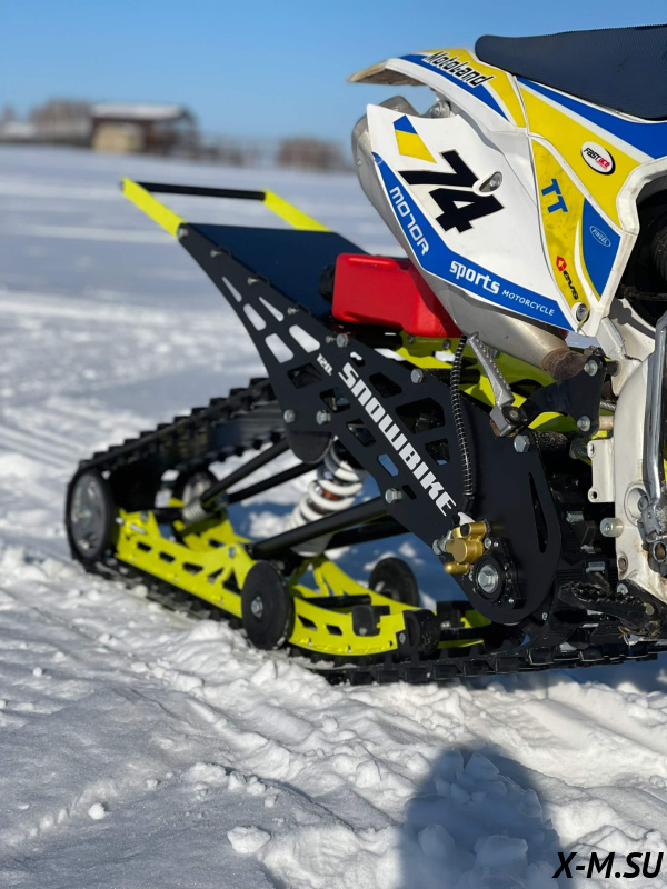 Folk 120 от Snowbike — универсальный гусеничный комплект для внедорожных мотоциклов. Гусеничный мотоцикл (СНОУБАЙК) это, по сути, одноколейный снегоход. Вы получаете возможность продлить мото сезон и эксплуатировать мотоцикл не только летом но и зимой.